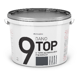 DANO TOP 9 обеспечивает идеальное качество итоговой поверхности. Этот материал очень удобен в работе благодаря пластичности и лёгкости как механизированного, так и ручного ошкуривания. Выпускается в фасовке 10л/~16,5 кг.