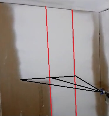 Шпатлёвка наносится на поверхность полосами с перекрытием примерно 50%, толщина слоя определяется скоростью ведения сопла и размером отверстия сопла. Расстояние от поверхности выравнивания до сопла при нанесении шпатлёвки составляет один метр. Плоскость факела составляет с плоскостью поверхности выравнивания прямой угол, даже при перемещении пистолета вверх-вниз, вправо-влево следует сохранять прямой угол. В противном случае шпатлёвка будет нанесена не равномерно.