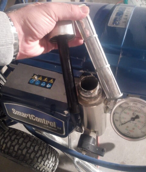 Перед началом работы необходимо установить чистый фильтр, предназначенный для работы со шпатлёвкой, в фильтрационную камеру и установить защитную сетку на рабочий цилиндр. Как правило, фильтр для шпатлёвки имеет оправу серого цвета.
