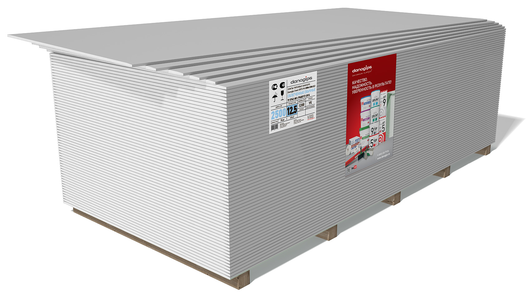 Масса гипсовой плиты Smart 2500х1200х12,5мм составляет всего ~20кг! Благодаря этому их монтаж и транспортировка становятся более быстрыми и удобными.