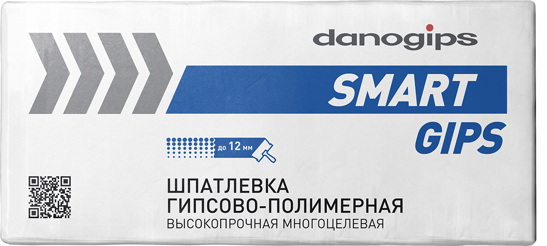 SmartGips Danogips подходит также для обработки швов гипсовых плит с утонённой кромкой, однако мы рекомендуем технологию с применением готовой шпатлевки Fill&Finish Light Danogips и бумажной ленты Danogips. С подробной инструкцией по приклеиванию лент можно ознакомиться, перейдя по ссылке через QR-код на лицевой стороне.