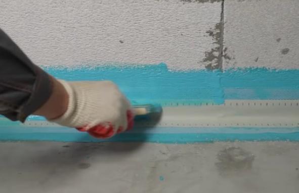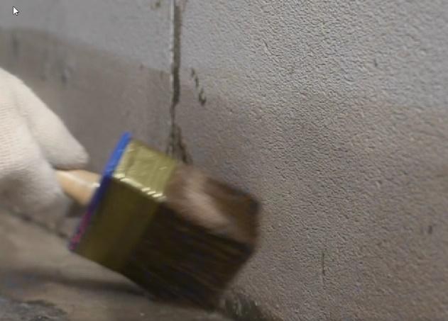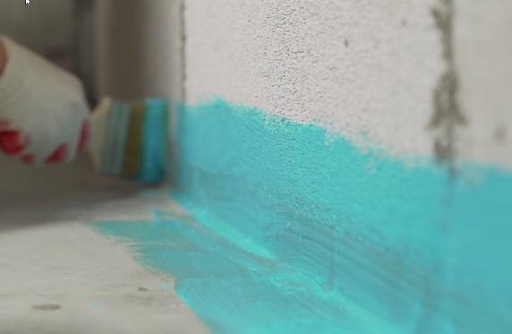 Shunday qilib, biz quritilgan toza poydevorimizga gidroizolyatsiyani qo'llashni boshlaymiz. Agar siz butun xonada gidroizolyatsiya qilishga qaror qilsangiz, unda devorlardan boshlash va keyin polga o'tish yaxshiroqdir. Birinchi bosqichda cho'tkadan foydalanish yaxshidir.