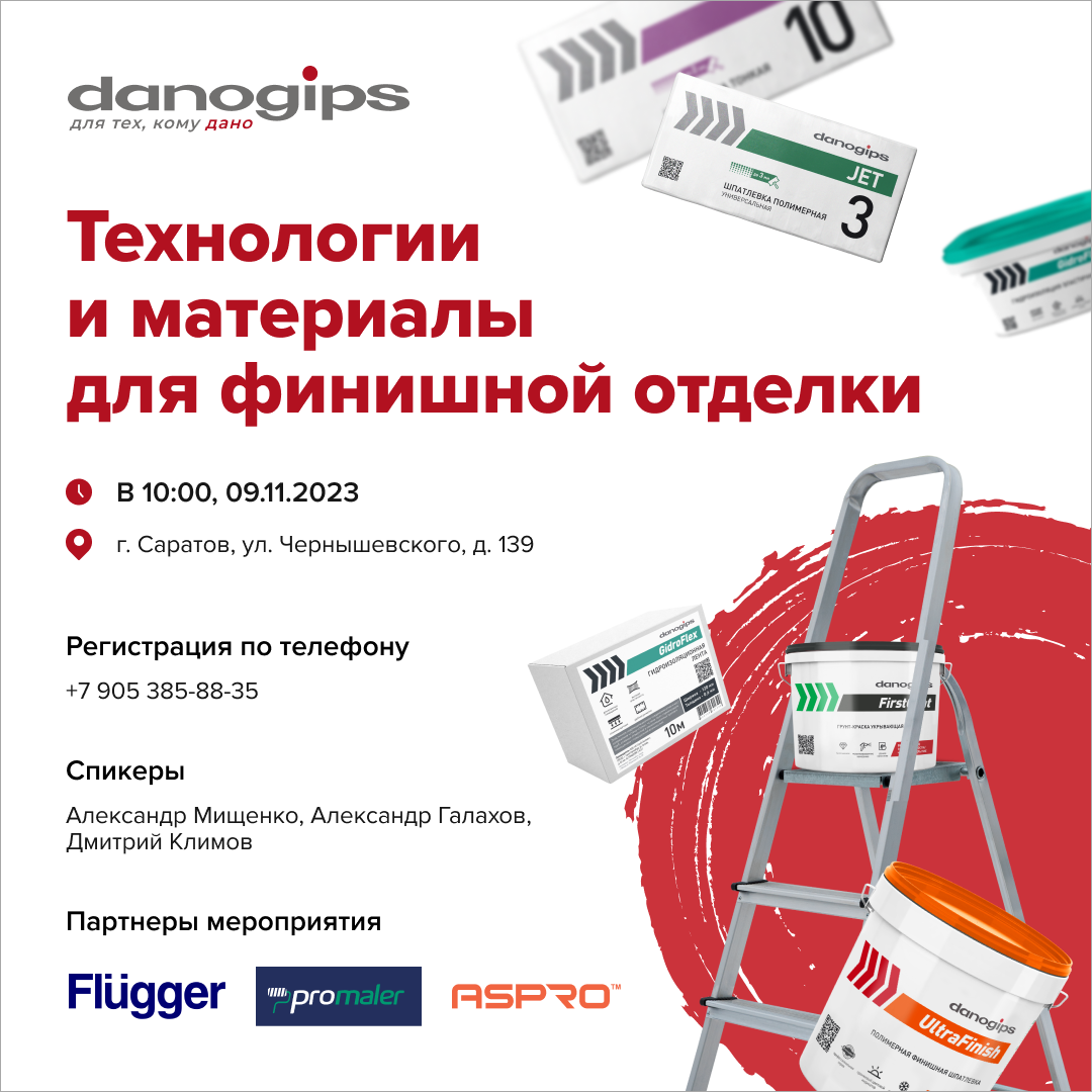 2023 yil 09 noyabrda Saratovda danogips, ASPRO , ProMaler va Flugger kompaniyalari tomonidan tashkil etilgan amaliy mahorat darsi bo'lib o'tadi.