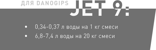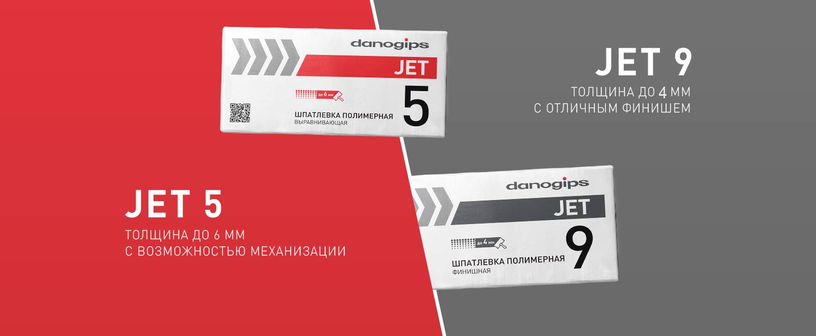 Danogips JET 3, DANOGIPS JET 5, DANOGIPS JET 9 va Danogips JET 10 quruq polimer plomba moddalaridir. Ular ular eritmaning uzoq muddatli hayotiyligi bilan ajralib turadi-kamida 72 soat. Bu sizga materialni yopish imkonini beradi darhol ko'p miqdorda va ish paytida bunga qo'shimcha vaqt sarflamang. Agar macun bo'lmasa men smenada ishlashga muvaffaq bo'ldim, keyin uni ertasi kuni ishlatish mumkin.