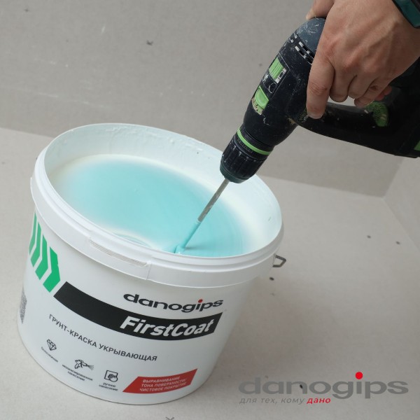Danogips FirstCoat-bu taglikning so'rilishini kuchaytiradigan va tekislaydigan to'ldirilgan bo'yoq.