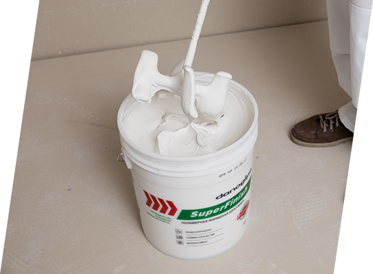 Danogips Superfanish macun gips tikuvlarini qayta ishlash uchun javob beradi yupqa qirrali plitalar, shuningdek qog'ozdagi burchaklarni qoplash uchun asosiy. Biroq, Amerika muhrlash texnologiyasiga muvofiq gips plitalarini o'rnatishda tikuv va bo'g'inlardan foydalanishni tavsiya etamiz ushbu maqsadlar uchun ixtisoslashtirilgan macun Danogips Fill&Finish Light, yuqori yopishqoqlik va pasayish tufayli siqilish.